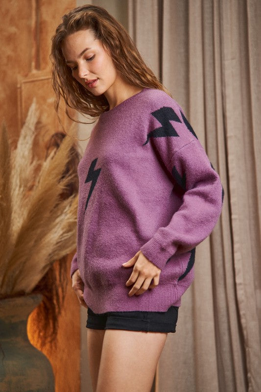 BOLT LONG SLEEVE CREW NECK KNIT SWEATER