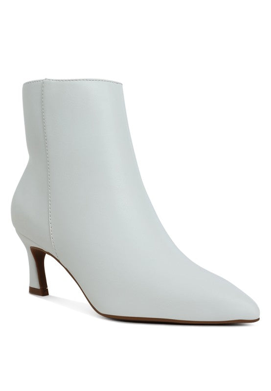You can never go wrong with a pair of faux leather kitten heel boots. Versatile and chic, the boots are comfortable with the slim glared kitten heel and soft cushion insoles. The zipper fastening is convenient and offers an easy to wear experience.