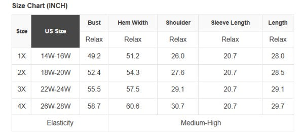 Plus Size Info: See size chart for approximate measurements