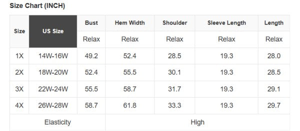 Plus Size Info: See size chart for approximate measurements