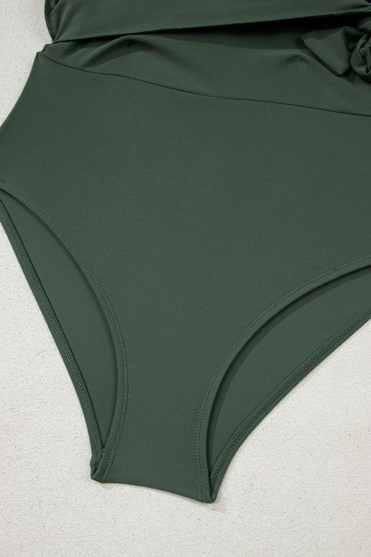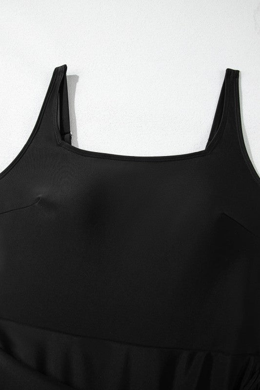 Dive into elegance with this solid one-piece swim dress designed to flatter your silhouette. The A-line cut creates a graceful, slimming effect while the square neckline adds contemporary style. Adjustable straps ensure a personalized fit for all body types, and the charming side-tied waist detail brings an extra touch of sophistication. Perfect for poolside confidence and beach days. Poly/Spandex