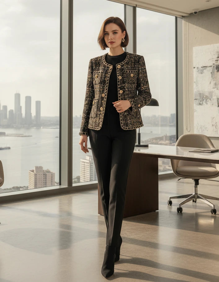 Vintage Tweed Gold Black Single Breast Jacket