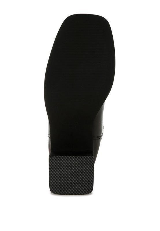 The Western-inspired, square-toed ankle boots are crafted from precious and premium genuine leather. They fit comfortably around the ankle with a stacked flared block heel, creating a flattering look. With a snug silhouette enhanced by pull tabs, you can wear these stunners with skirts, dresses, denim, and trousers.