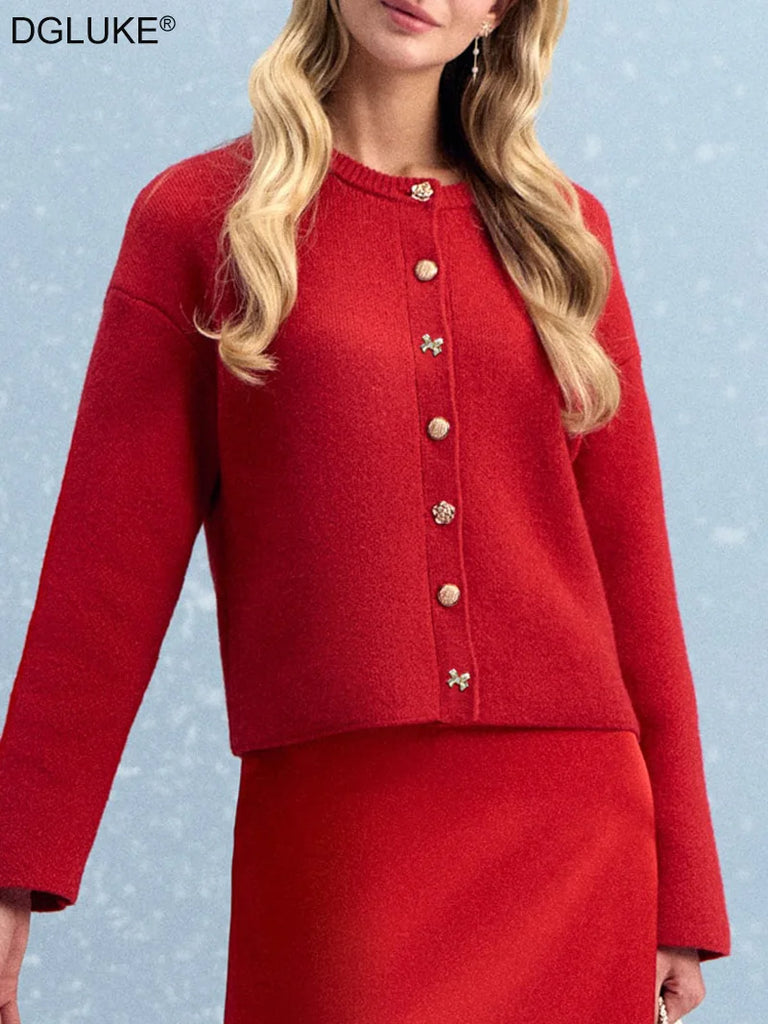 Knit Cardigan with Gold Colour Buttons