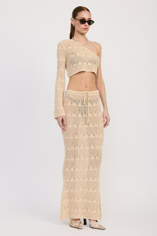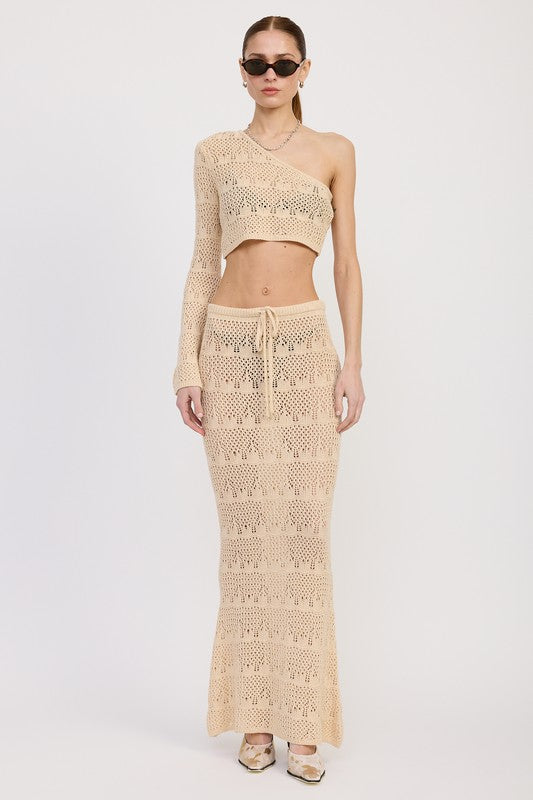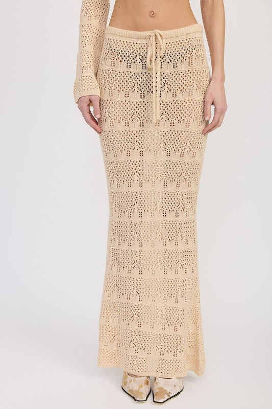 Crochet Maxi Skirt with Waist Drawstring (Top sold separately) - CREAM / S is backordered and will ship as soon as it is back in stock.