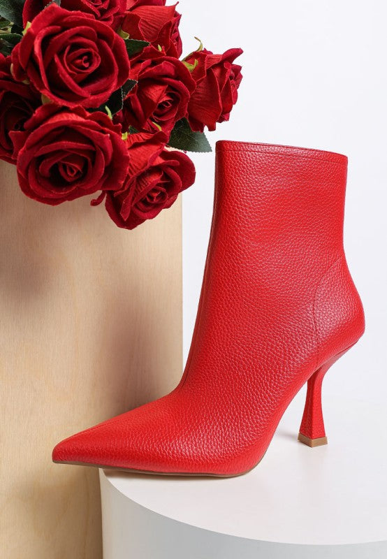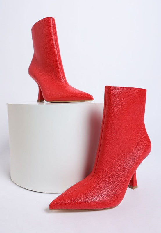 The spool heel boots are a versatile, chic piece with their solid minimalist exterior. The spool heels are a trendy touch, while the pointed toe adds a bit of allure. The comfortable cushion insole offers a strain-free fit, and the zipper fastening is convenient.