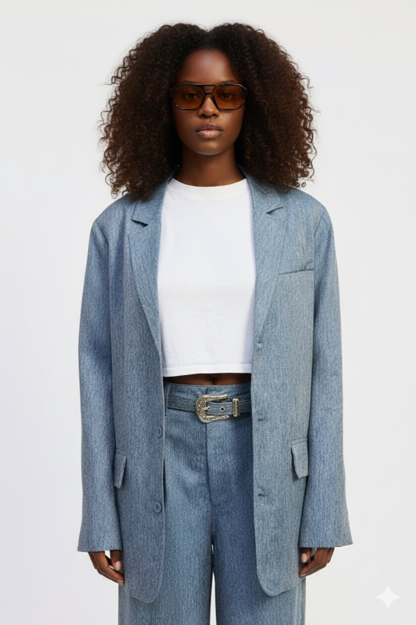 Oversized Button Up Blazer - DENIM BLUE / S is backordered and will ship as soon as it is back in stock.