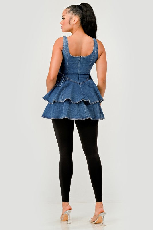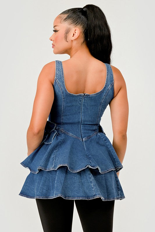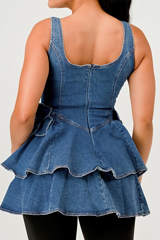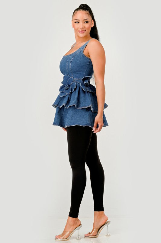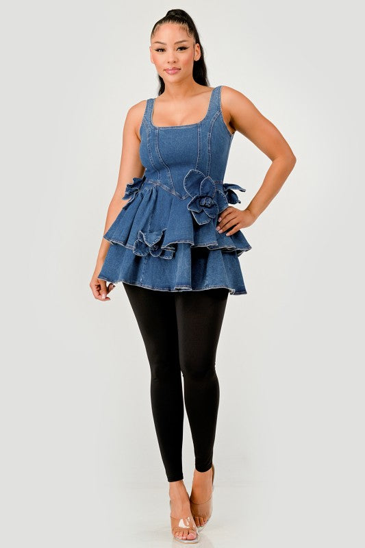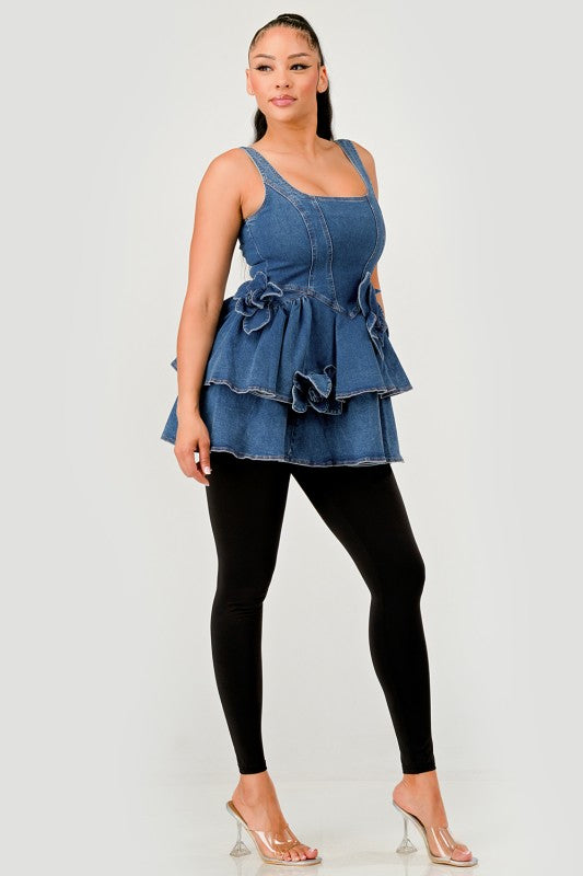 Ruffle Bloom Denim Peplum Top
